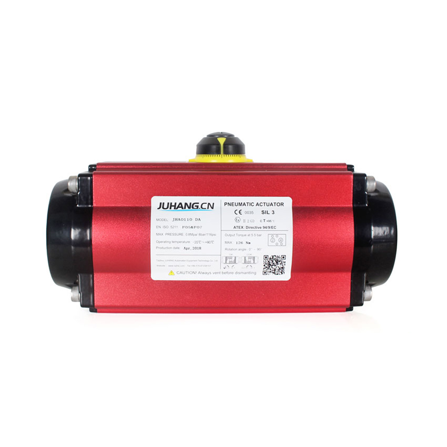 Rack og pinion pneumatisk aktuator dobbeltvirkende JHA0110DA, høj kvalitet, lav friktion, lang levetid, skifttider er op til mere end 1 million gange, høj stabilitet.