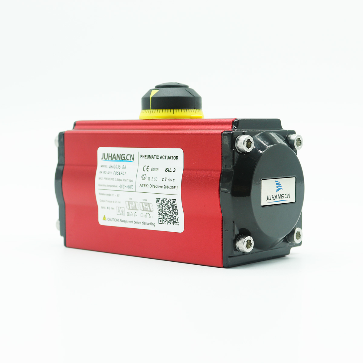 Rack og pinion pneumatisk aktuator dobbeltvirkende JHA0035DA har nedenstående egenskaber: