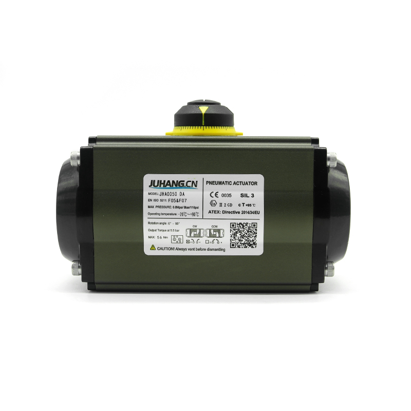 Rack og pinion pneumatisk aktuator dobbeltvirkende JHA0050DA, høj kvalitet, lav friktion, lang levetid, skifttider er op til mere end 1 million gange, høj stabilitet.